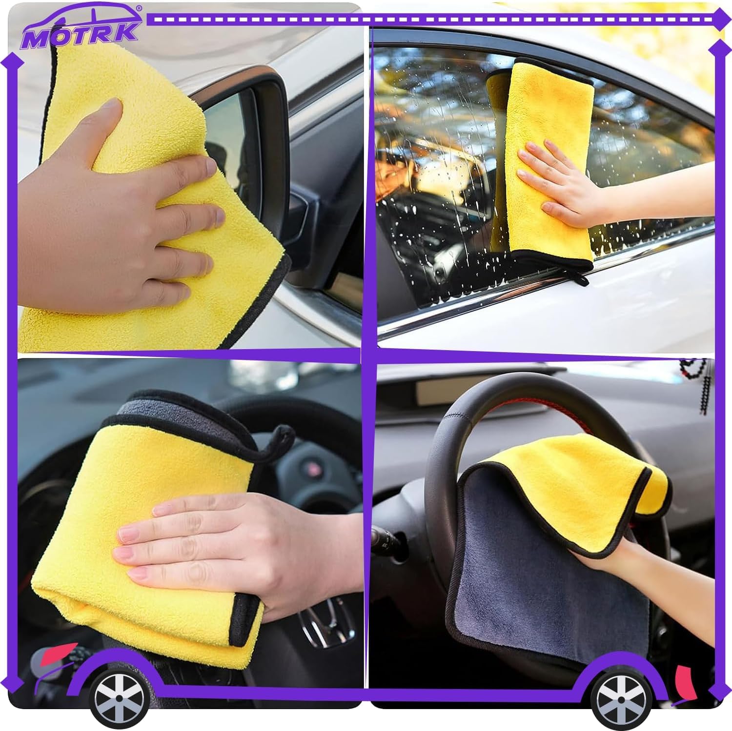 Microfiber Car Cleaning and Drying Towel Set Keep Your Car Clean and Neat. Existing towels are made of high-quality microfiber to ensure durability. These towels are extra thick and have a double-layer design with high absorbency to absorb dust particles and moisture. These towels have a blend of microfiber and plush for great pickup power and softness, respectively. In addition, the towels clean surfaces with great care without leaving any scratches, streaks or lint on the surface.