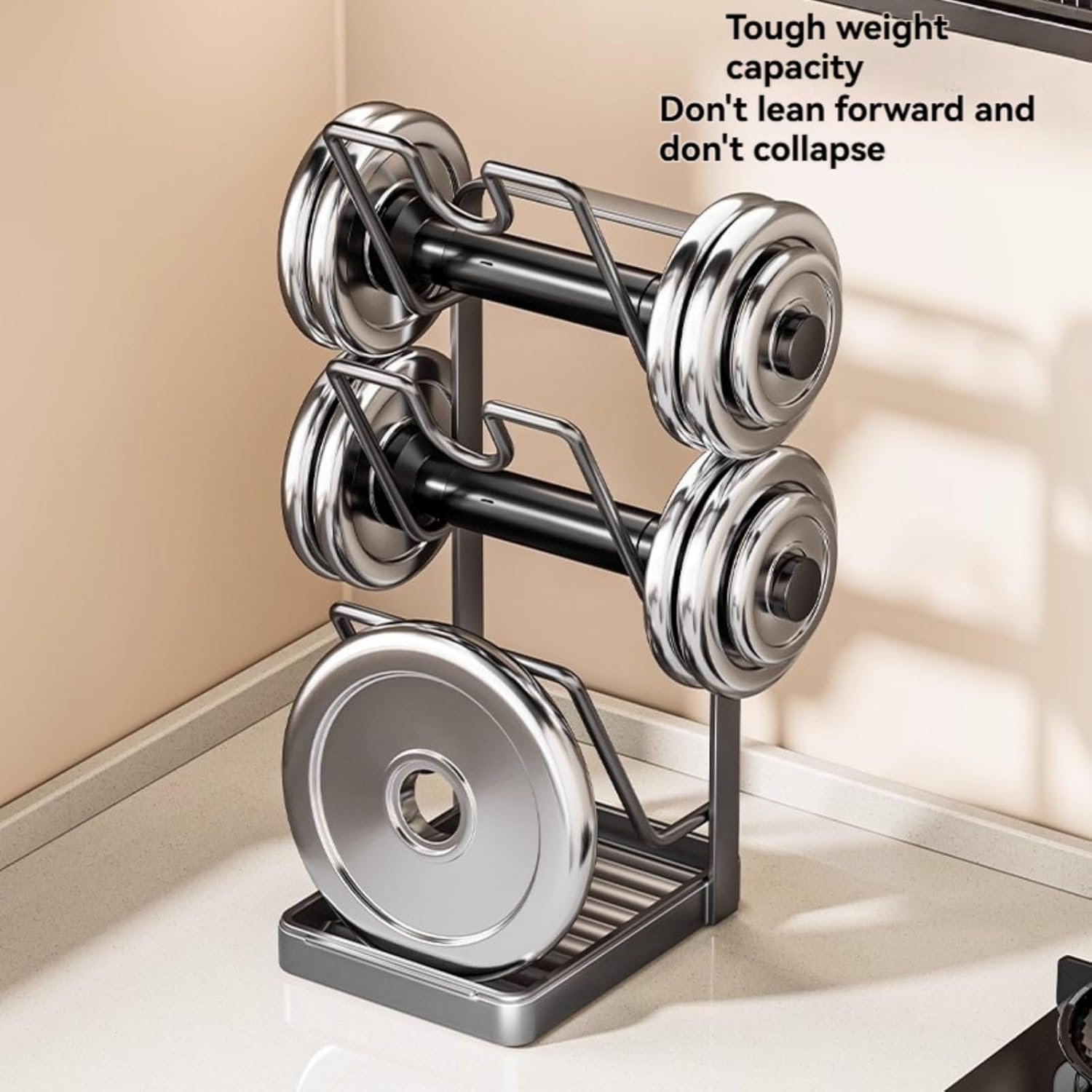 Multi-functional Integrated Storage: More than just a pot lid rack, it can also stably store spatulas, ladles, cutting boards, pot lids, flat pans, and even . Truly a “one-rack ” for commonly used kitchen utensils.Layer Vertical Design:Space-Saving: Utilizes vertical space, allowing utensils to be stored upright, greatly saving valuable countertop space.Clear Partitioning: The upper layer typically holds pot lids and cutting boards, while the lower layer holds spatulas, spoons, etc., making access convenient and everything easily visible.Efficient Drainage:Equipped with a drip tray at the bottom, water droplets from the utensils can directly flow into the tray during storage, ing the countertop from getting wet and facilitating ventilation and drying to growth.Dimensions: 18.2*13.6*22.5CM