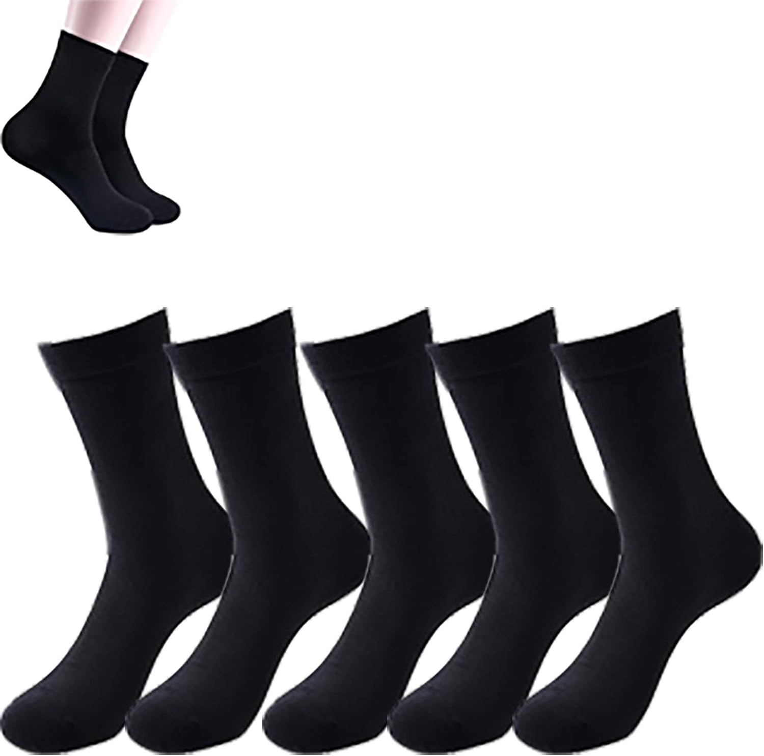 Men's Mid-Calf Socks 5-Pair, 100% Cotton Socks, Breathable Everyday Socks for Business and Casual Wear