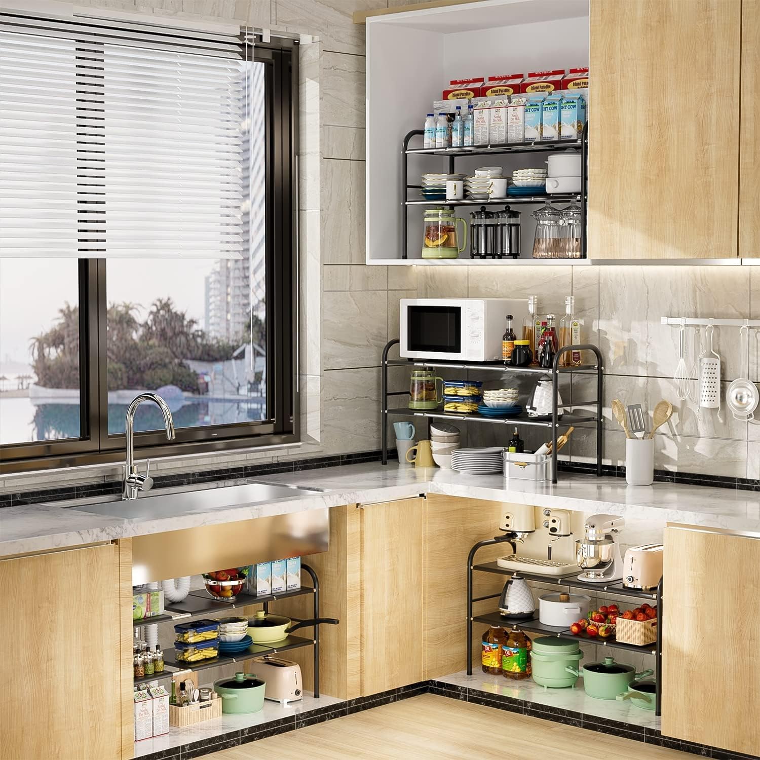 🍜【Multi-purpose Storage Rack】: Super suitable for bathroom standing shelf storage, kitchen cabinet storage shelf, spice shelf storage shelf, shelf under the table or storage shelf under the sink shelf. It can also be used as a book shelf, spicy shelf, shoe shelf.