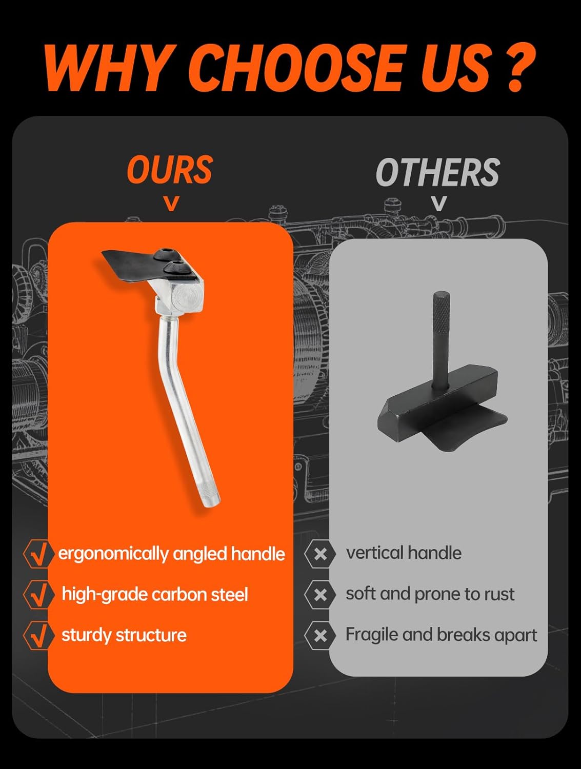 Safety and Comfort: The ergonomically angled handle provides superior leverage and a secure, non-slip grip. The strategic blade bevel allowing it to slide perfectly flush against the oil pan surface.