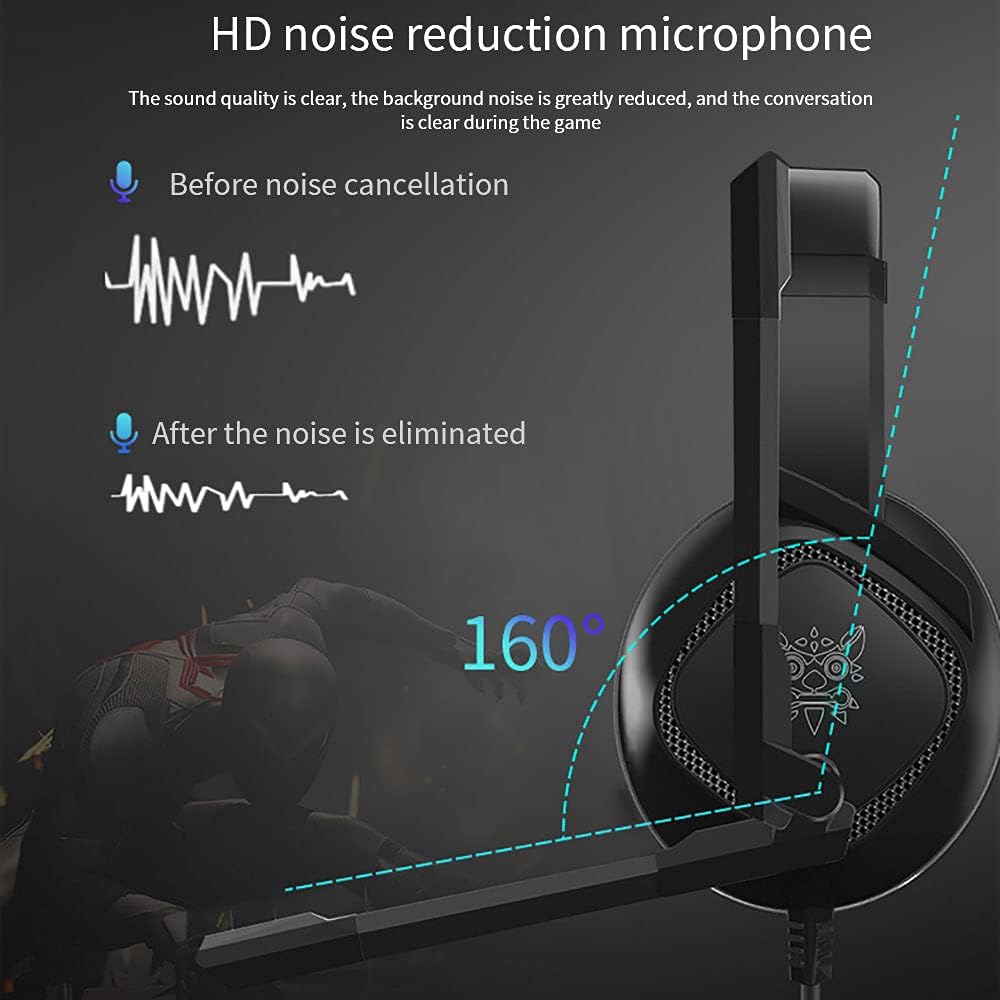Onikuma K19 Gaming Headset Headphones with Microphone, PS4 PS5 Xbox Headset with Mic & RGB LED Light Noise Cancelling Surround Sound for Playstation Computer PC Mac Xbox One-Black