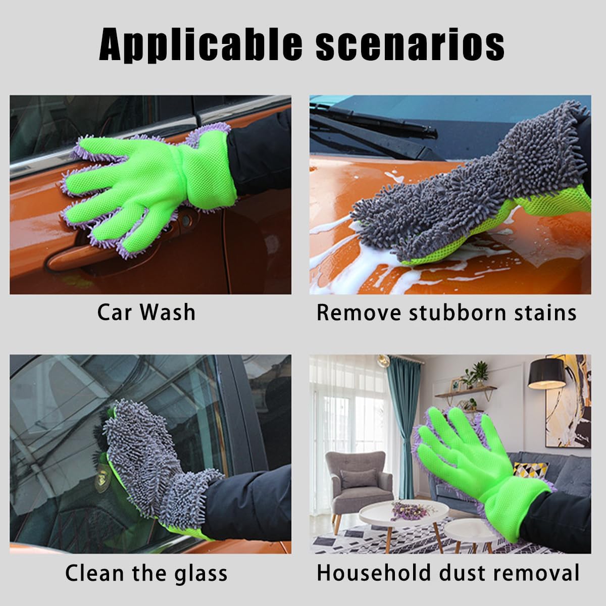 Pack of 2 Car Wash Gloves, Finger, Microfibre Car, Chenille Wash Mitt Glove, Double-Sided Car Wash Glove, for Cleaning Cars, Car Care