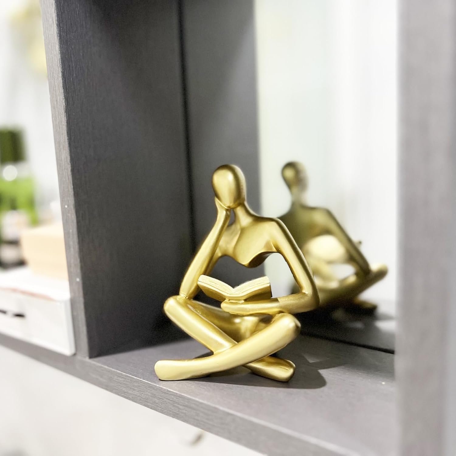 pyebe Home Decor,Gold Reading Thinker Statue Modern Figurines Abstract Aesthetic Sculpture Thinker Resin Statue Set for Home Decoration Living Room Office Bookshelf Shelf Table