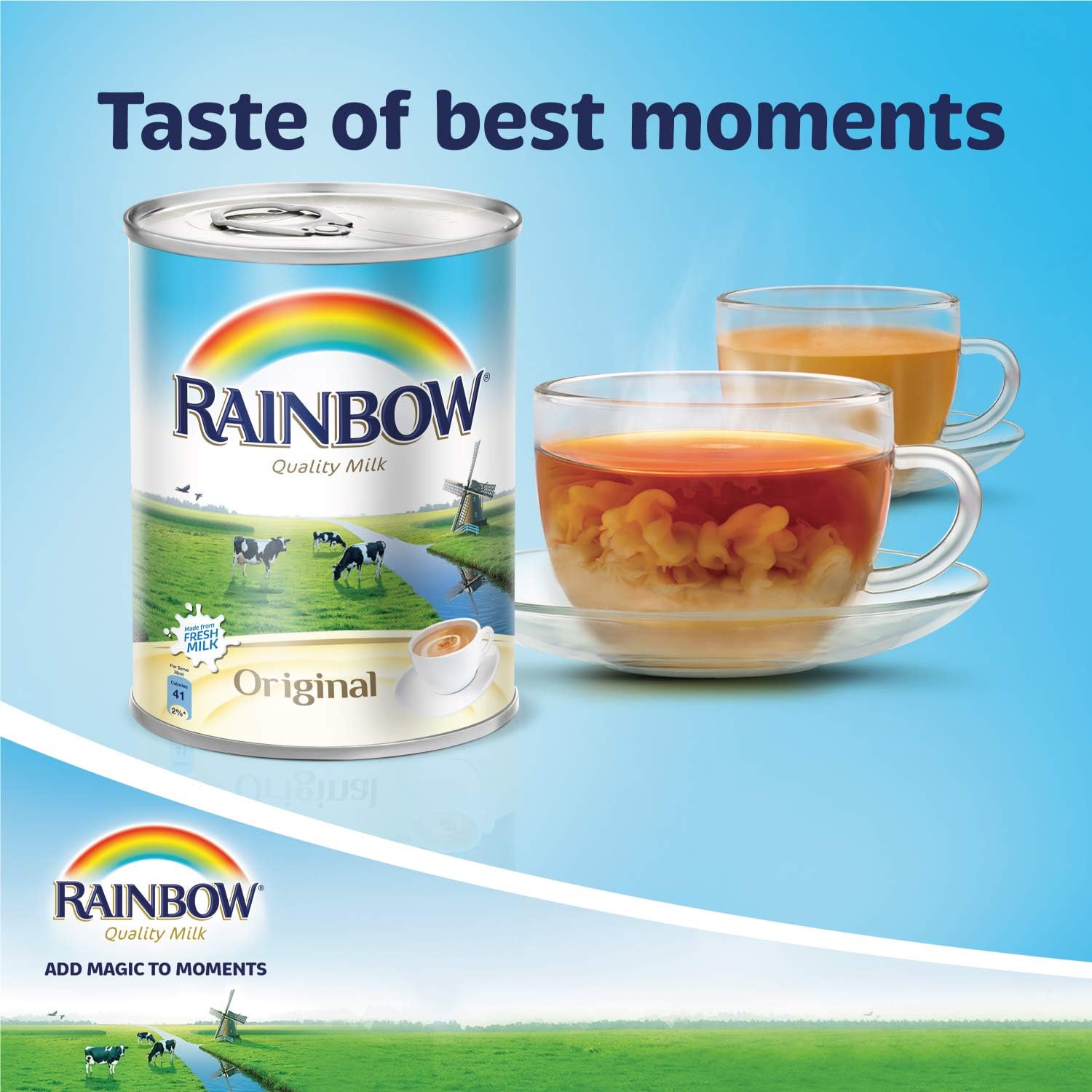 Rainbow Original Evaporated Milk is perfect match for your tea, coffee or favourite recipes. It is made from fresh milk. Makes for a delicious addition to your favourite recipes. Contains a rich blend of ingredients that provide the essential nutrients.