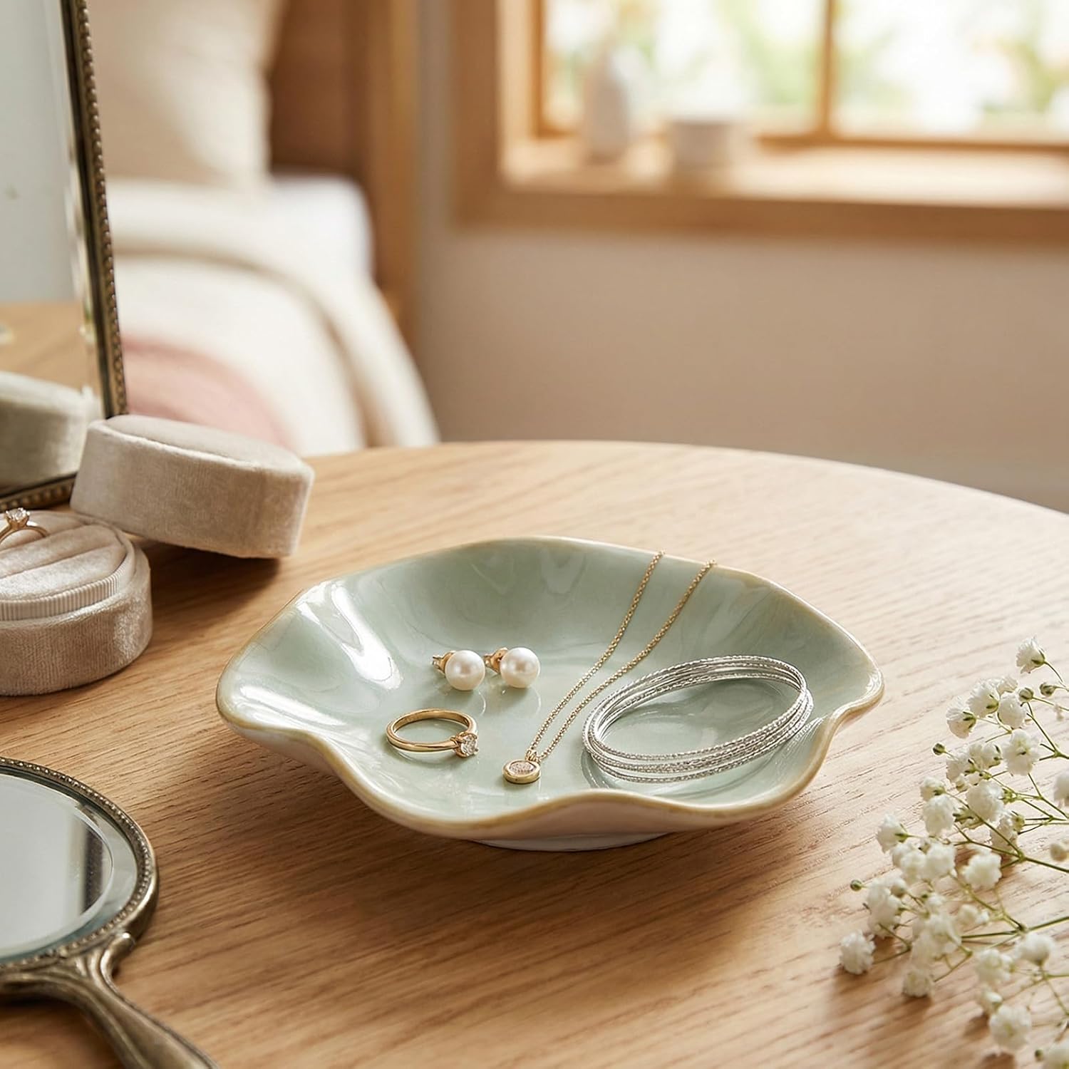 Room Decor Jewelry Ring Tray-Organizer Dish for Rings, Necklaces, and Accessories, Elegant Vanity Tray for Home