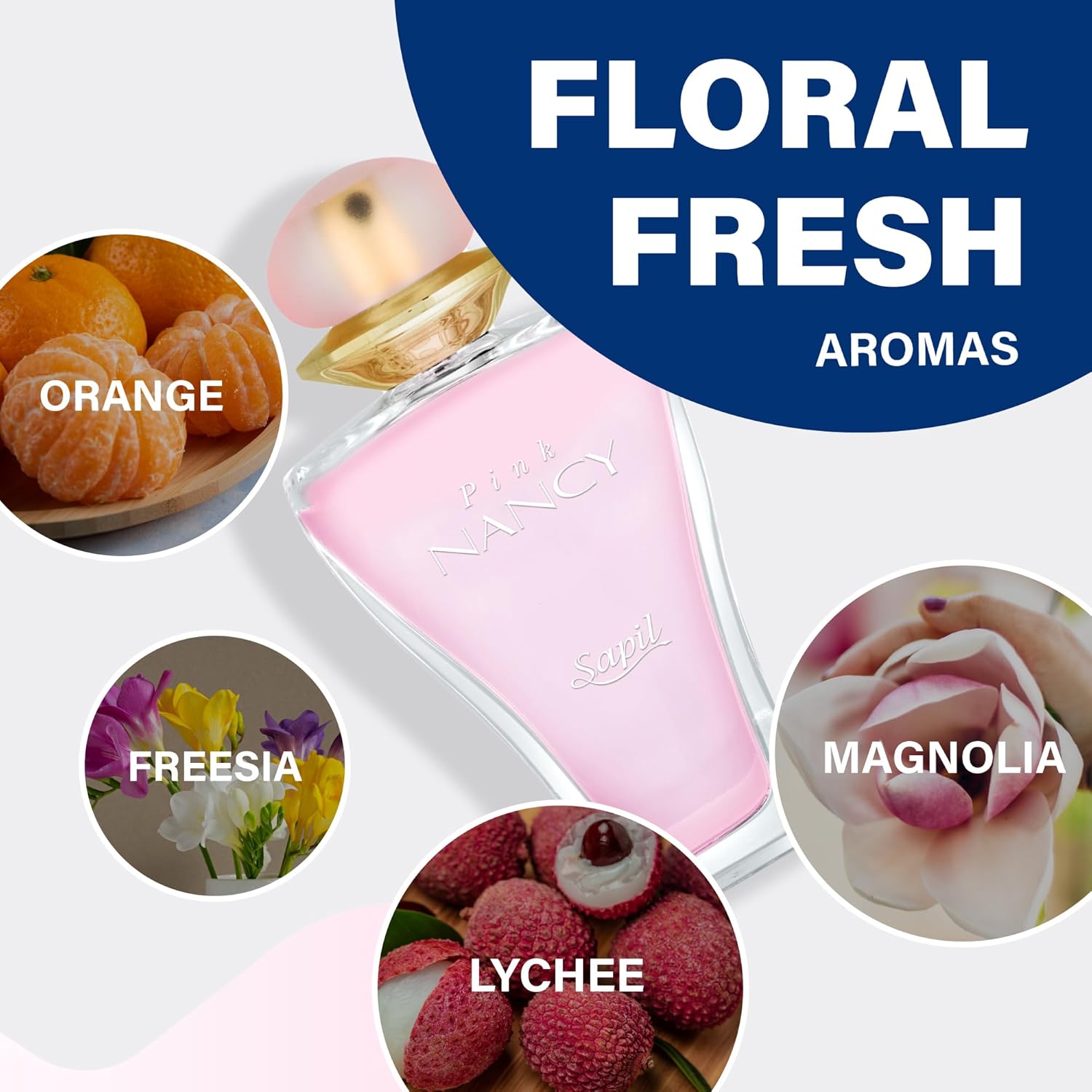 An ultra feminine fragrance which pulsates with freshness yet is tranquil, subtle and elegant. Seductive deep down at heart. A classic floral bouquet mingles with sensuous spicy notes that flow serenely and is warmed with soothing amber notes at the end. Creates delightful feminine fantasies. Nancy colours of fancy.