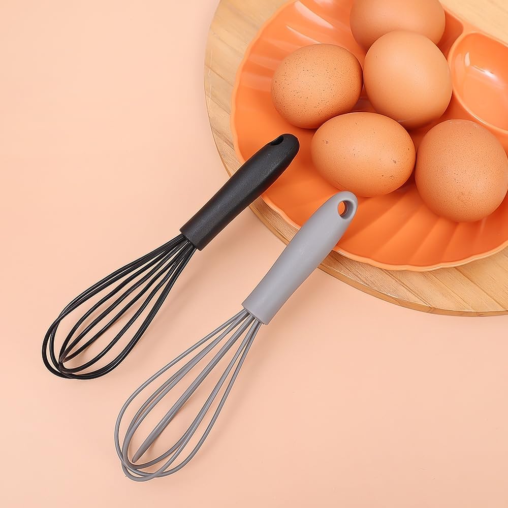 Silicone Whisk Stainless Steel Wire Heat Resistant Non Stick Non Scratch Kitchen Utensil, Whisking Tool for Mixing Blending (Grey)