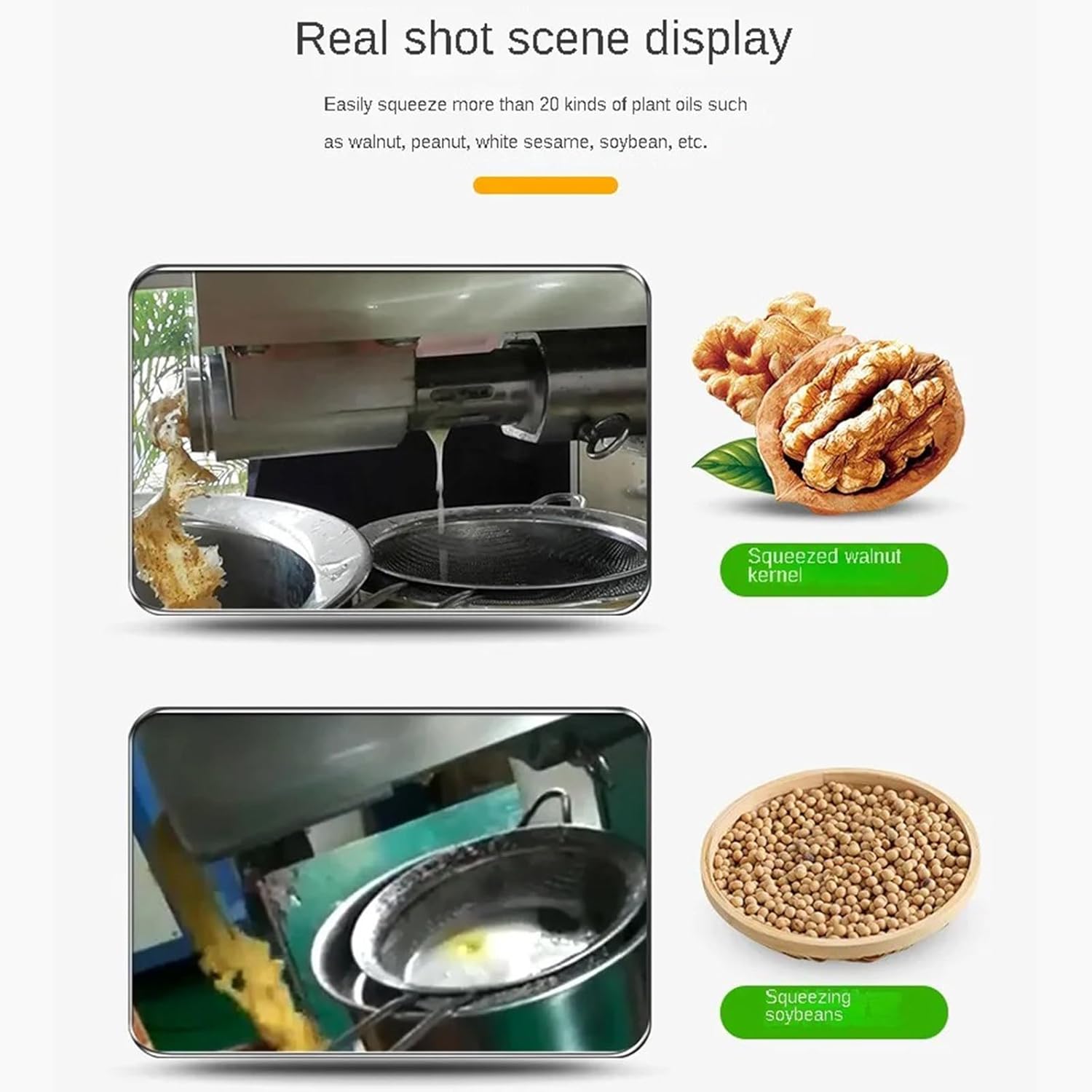 【Cold and Hot Pressing】Cold pressing can retain the natural nutrients of the oil to the greatest extent, such as vitamin E and folic acid; hot pressing can increase the oil output. Dry raw materials can be cold pressed directly. Both cold pressing and hot pressing require preheating the machine.