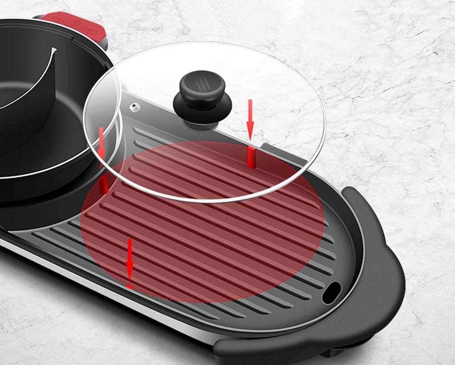 Five-speed portable electric grill pan with adjustable firepower hot pot 2 in 1