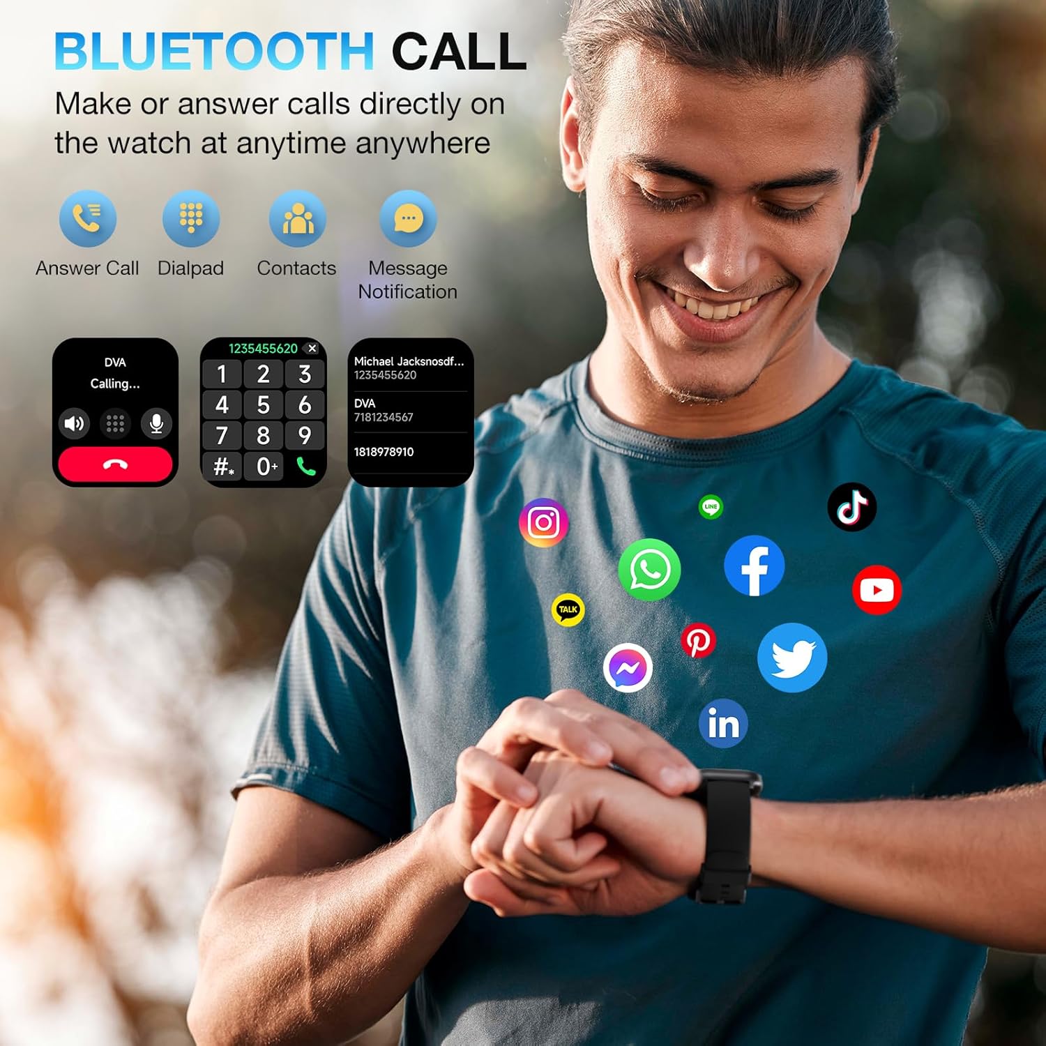 【BUILT-IN ALEXA & BLUETOOTH CALLING】This 2024 brand-new smart watch features an integrated Amazon Alexa voice assistant and supports Bluetooth calling. You can interact with the watch to check messages, play music, set reminders and manage your schedule, get weather and traffic updates, and more. It significantly reduces the need to rely on your phone(Sending SMS is not supported).