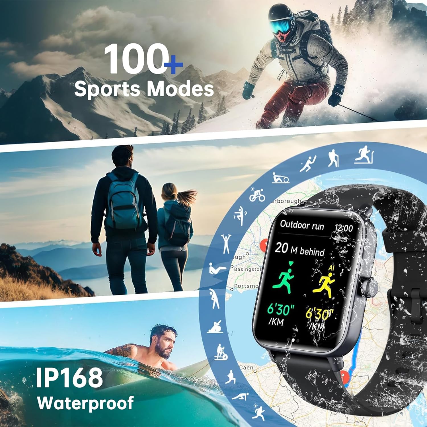 【120+ Sport Modes and IP68 Waterproof】Fitness watch comes with 120+ sport modes to meet all your fitness needs. When you exercising, the watch precisely tracks your performance metrics. IP68 water proof sports watch allows you use it even while washing hands, or swimming or surfing