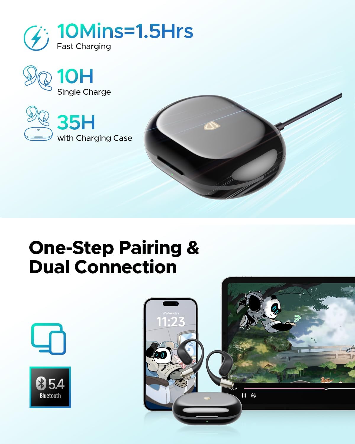 SoundPEATS Chasers Open Ear Headphones, Bluetooth 5.4 Wireless Earphones with LDAC, Earbuds with Earhooks, Dual-Mic Noise Cancellation for Clear Call, Multi-Point Connection, IPX5, 35H, APP (black)
