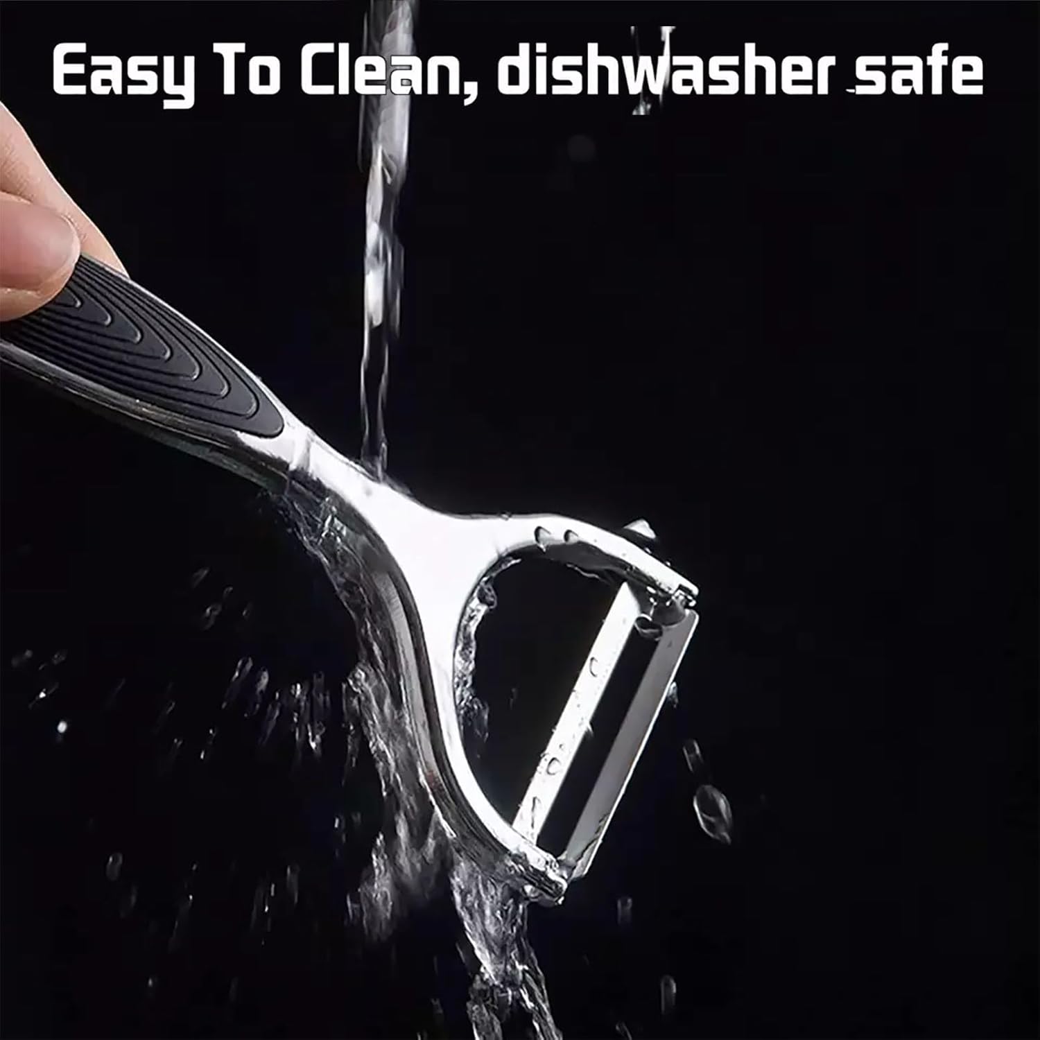 Efficient Peeling Performance:Equipped with a sharp, precision-engineered blade, this peeler effortlessly removes thin layers of skin from fruits and vegetables, preserving more of the edible portion. The blade’s angle and sharpness are optimized for smooth, consistent peeling without excessive pressure. It glides seamlessly through tough skins like potatoes, carrots, and apples, while also handling delicate items like tomatoes or kiwis with care.