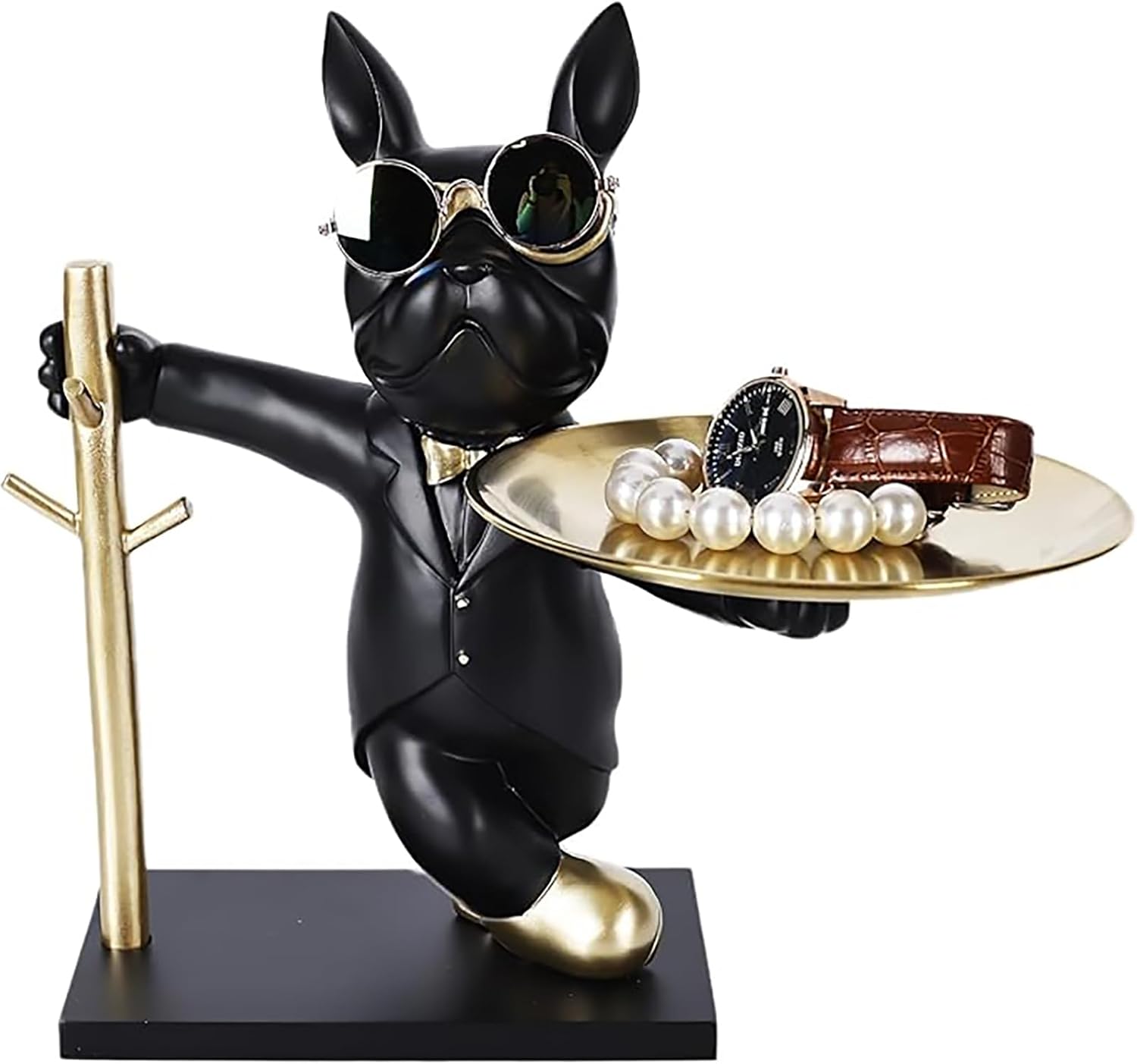 Tazweeq Bulldog Key Holder Statue, Bulldog Key Holder with Tray, Storage Key Holder, Candy Jewelry Earrings Tray, Suitable for Home Decor Modern Animal Sculpture Table Decor (Black)