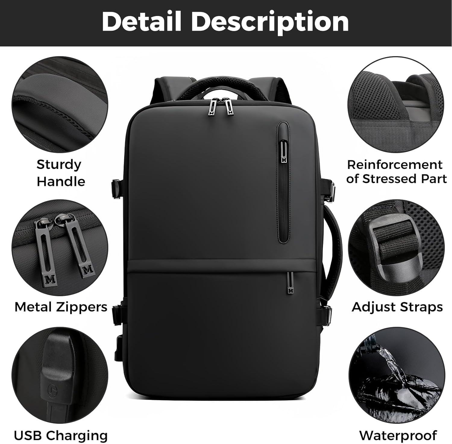 The men’s travel backpack is constructed with lightweight waterproof fabrics and scratch-resistant materials for protection in light rain, and features heavy-duty two-way zippers on both sides of the backpack for easy access. This lightweight travel backpack can be a great companion for college, travel, business, everyday use, and outdoor activities. It is also an ideal gift choice for your loved ones.