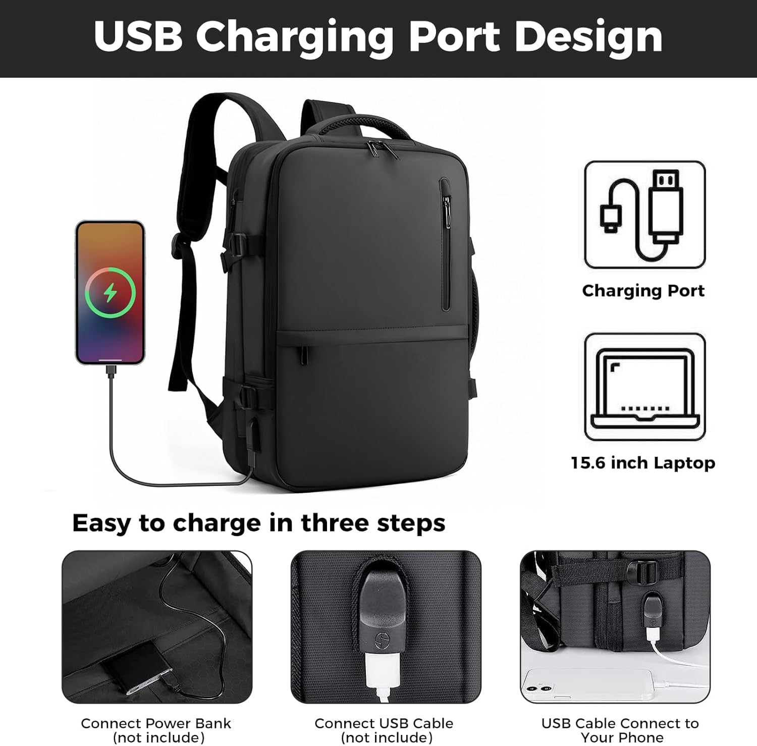 Charging computer backpack with an external USB charging port & built-in charging cable, this laptop backpack with a USB charger port provides you a more convenient way to charge your electronic device via connecting your own power bank while walking or cycling. The headphones jack gives easy access to earphone usage. Practical gifts for teens, boys, girls, friends, mothers, and fathers, etc.