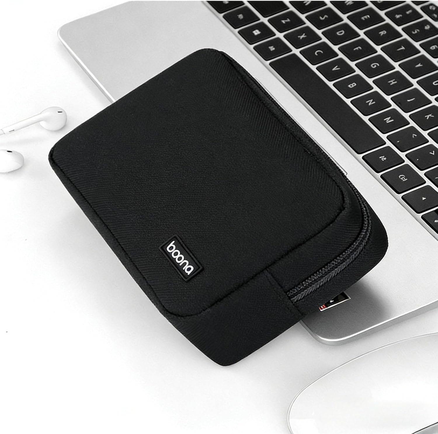 Travel Tech Organizer – Dual Layer Storage Pouch for Power Bank, Earphones, and Hard Drive, Compact Travel Accessory Bag (Black)