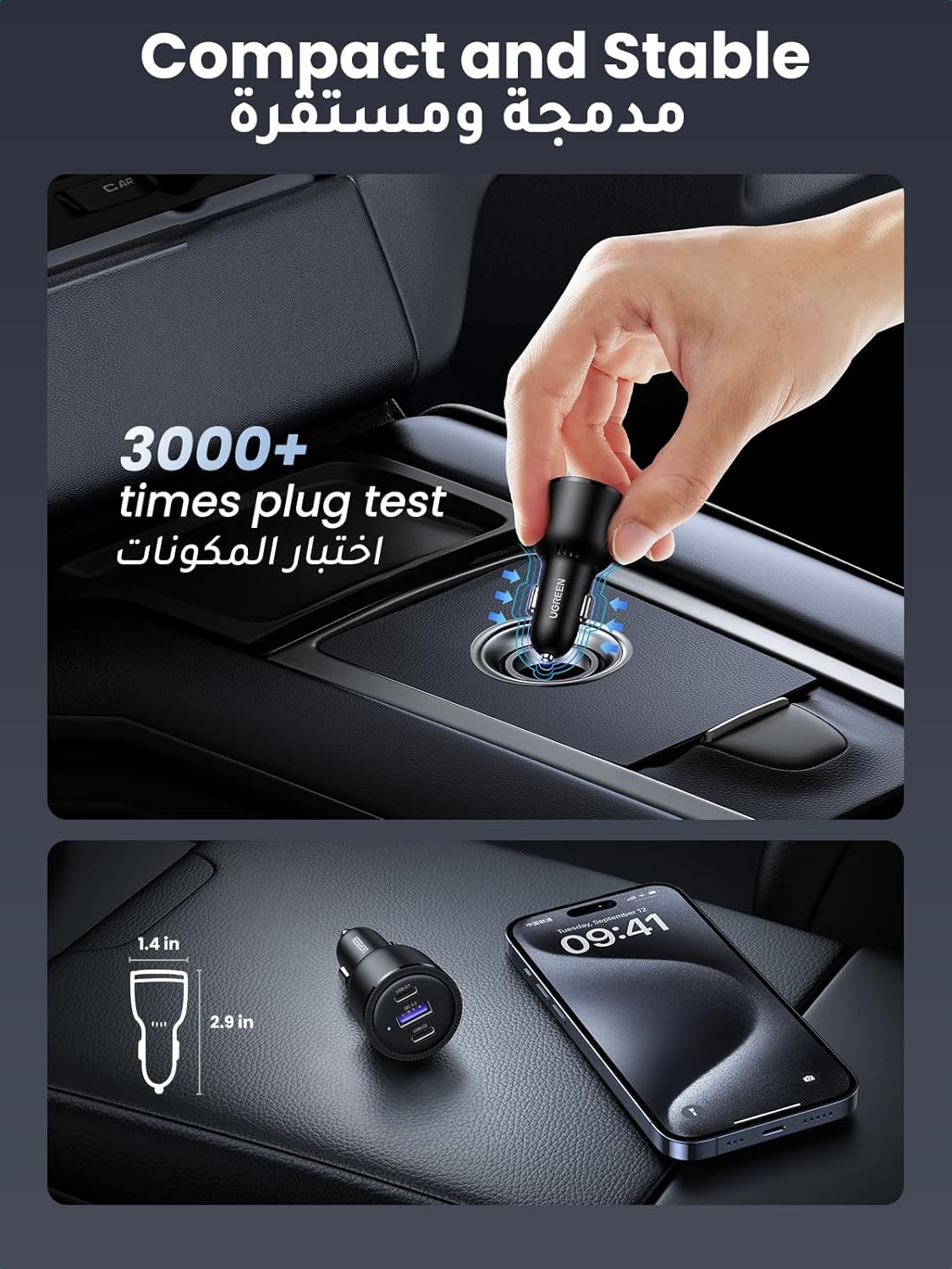 【35W Fast Charger for iPhone 15 Pro Max】The UGREEN car charger charges the new iPhone 15 Pro Max at 35W full speed. It can be fully charged from 0% to 50% within only 30 minutes, which is much faster than a normal charging adapter.