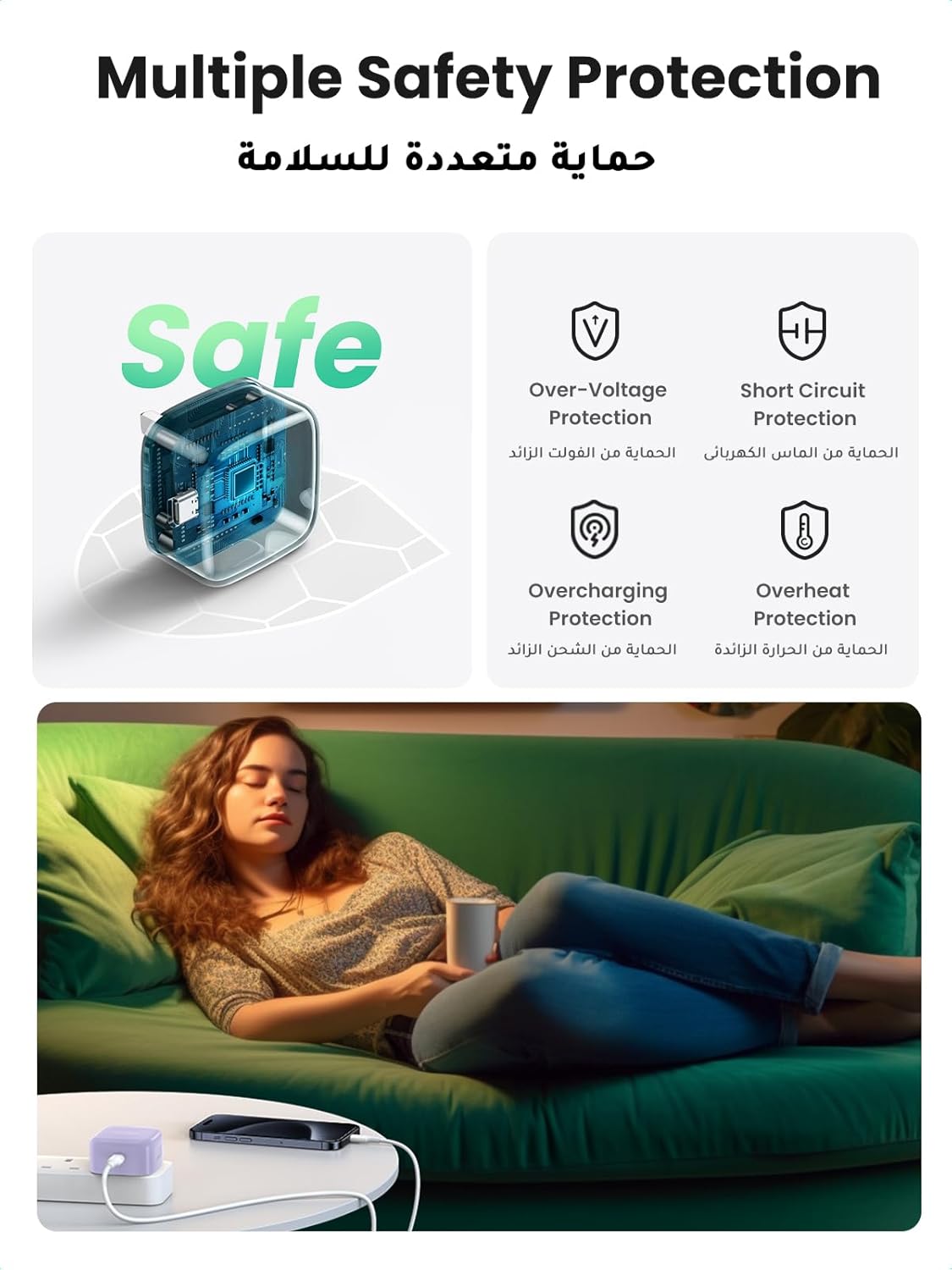 【Safe & Stable Charging】The iPhone charger fast charging plug is built-in multi protections, and securely protects your device against over-voltage, over-current, over-heating, short-circuiting issues and ensures a safer and more stable charging condition for your digital device.