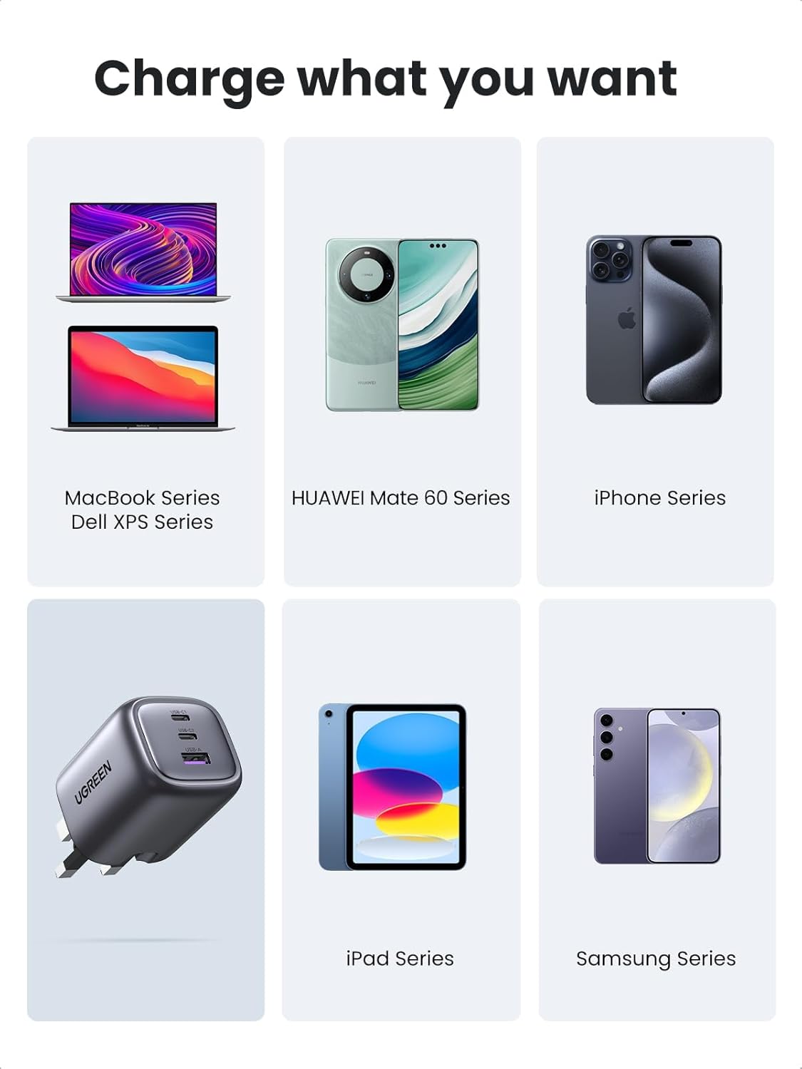 UGREEN Nexode Charger —— 65W USB C GaN Fast Charger Plug, provides a perfect solution for your multi-devices.