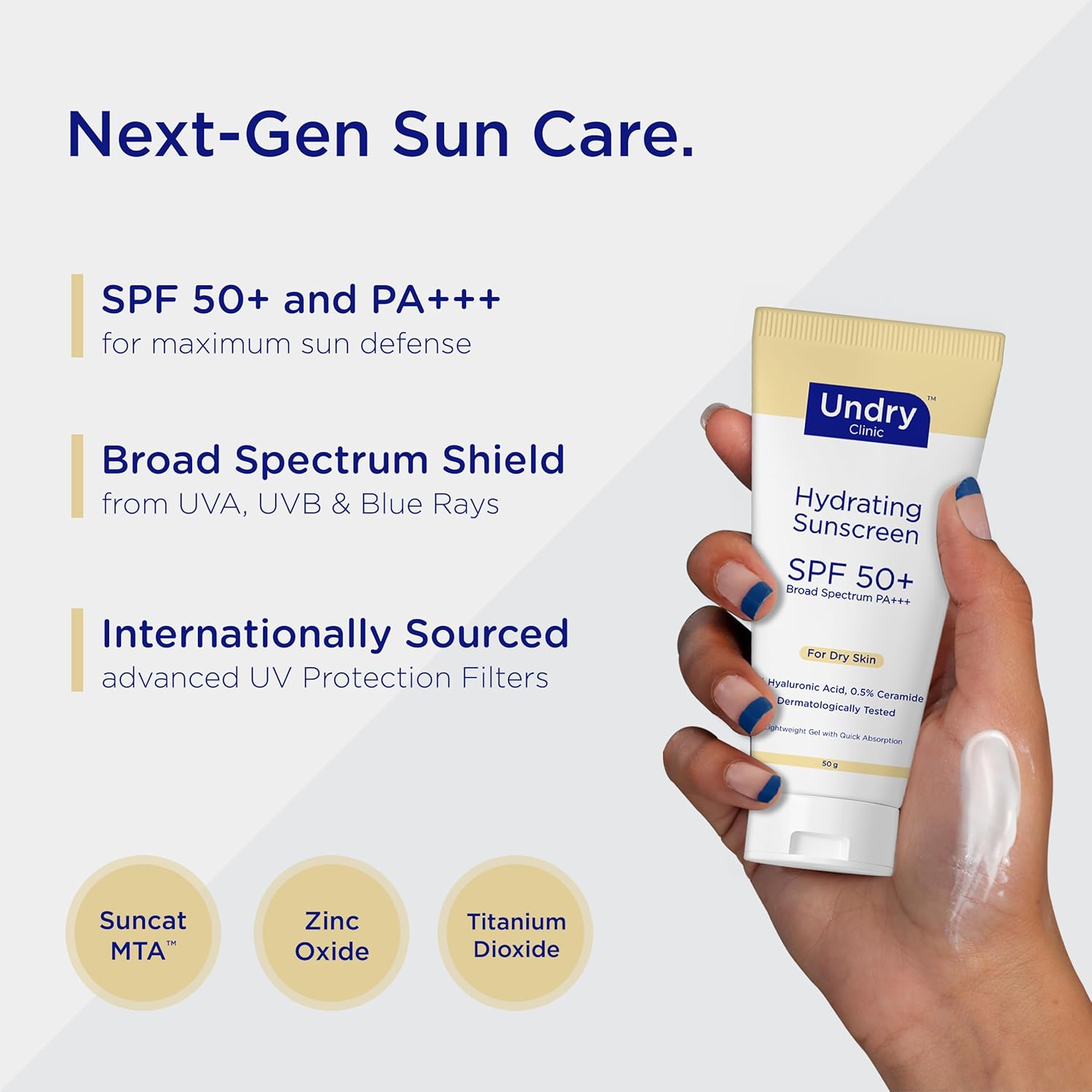 Hydrating Gel Sunscreen for Dry Skin – Sunscream with Skin-Safe Ingredients, Free From 15+ Harmful Chemicals & Toxins; Undry Suns Cream with SPF 50 Sunscreen for Women / SPF 50 Sunscreen for Men