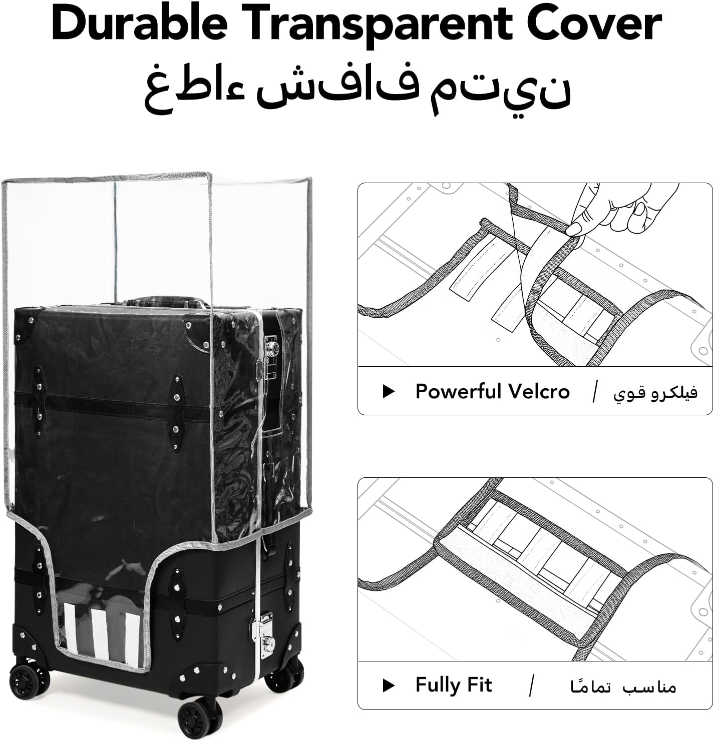 Protective Cover Included: To maintain the pristine condition of your vintage suitcase, each set includes transparent protective covers. This thoughtful addition safeguards against scratches, dust, and water, ensuring your vintage luggage remains both stylish and functional trip after trip.