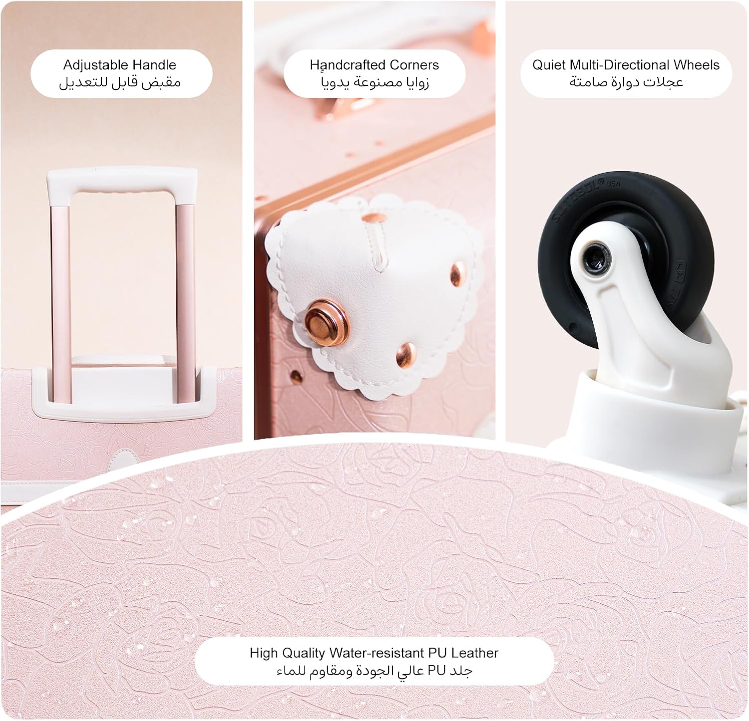 Handmade Craftsmanship – Skillfully handcrafted by artisans, each piece features premium faux leather and sturdy hardware for exceptional durability. Reinforced with four protective corner guards, this suitcase is designed to resist wear and tear while enhancing its vintage appeal.
