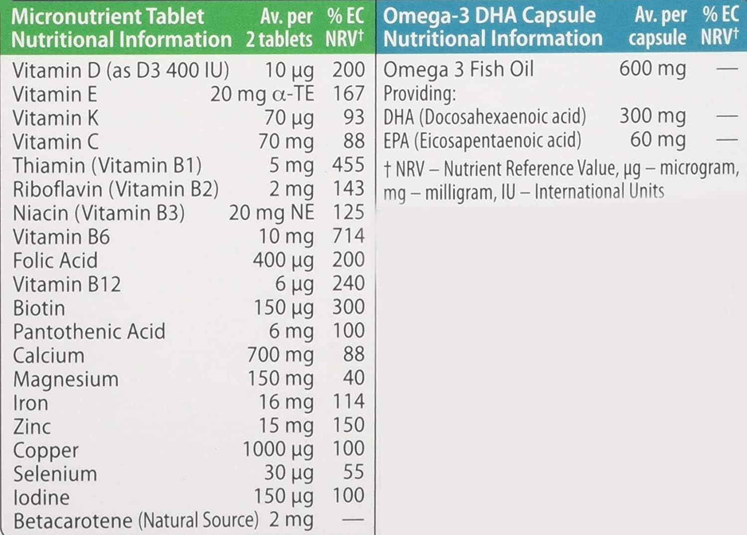 700mg calcium and 300mg Omega 3 DHA, as recommended by experts when breast-feeding