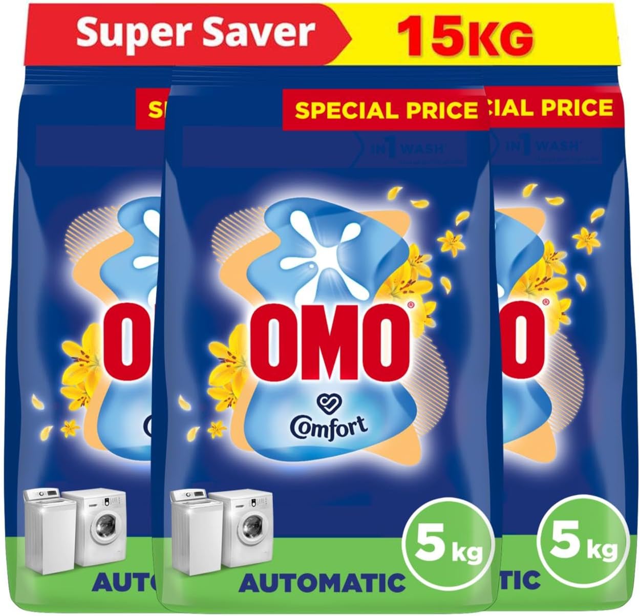 OMO Automatic Laundry Detergent Powder, Touch of Comfort, up to 100% stain removal in 1 wash*, 5 Kg x3, Packaging may vary
