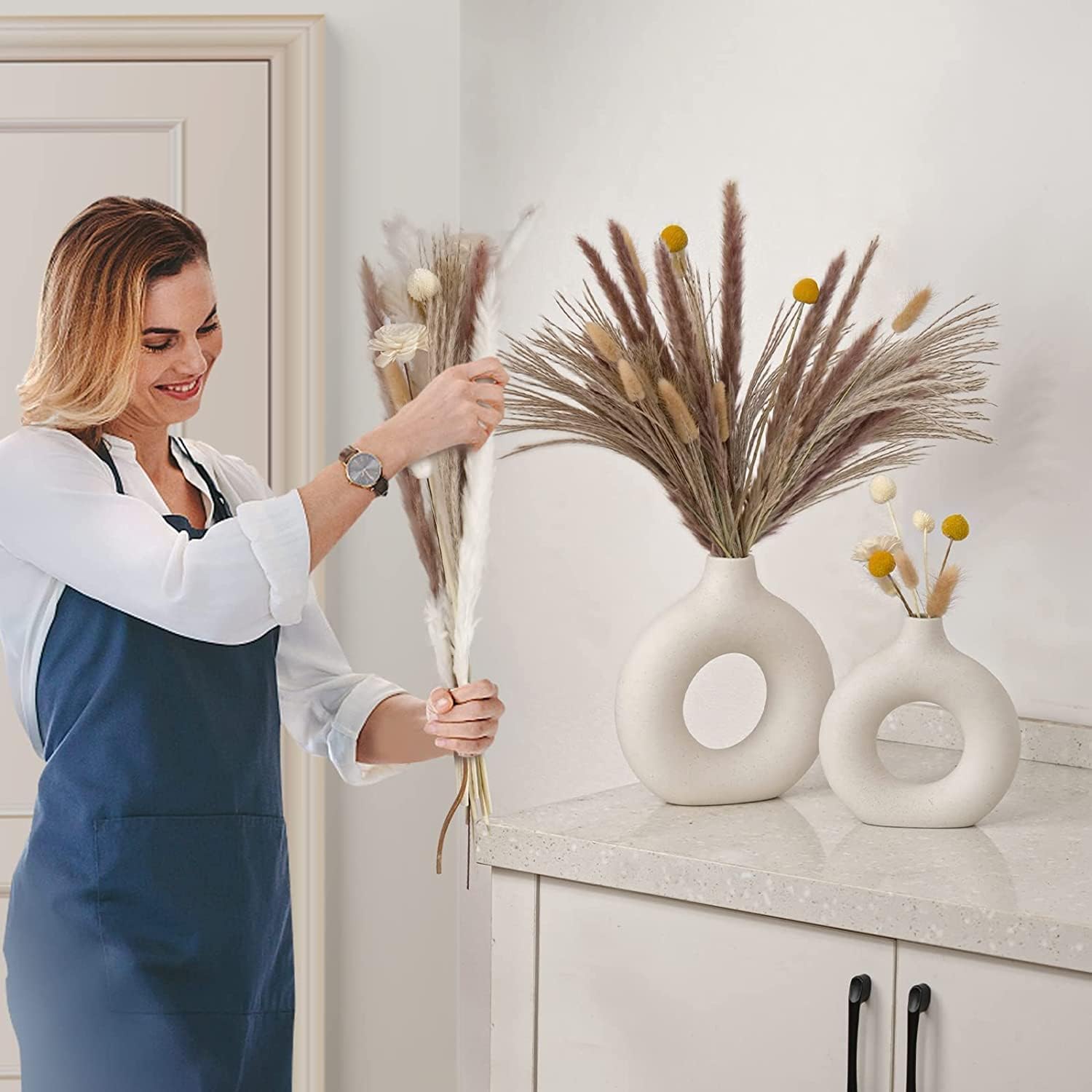 【PERFECT DETAILS】 – Each Pampas grass decorative vase is expertly designed and handcrafted to form simple, elegant donut lines and fired at thousands of degrees, Making it an unparalleled work of art that fits many room decor and home styles – rustic, aesthetic, modern, minimalist, and unique.