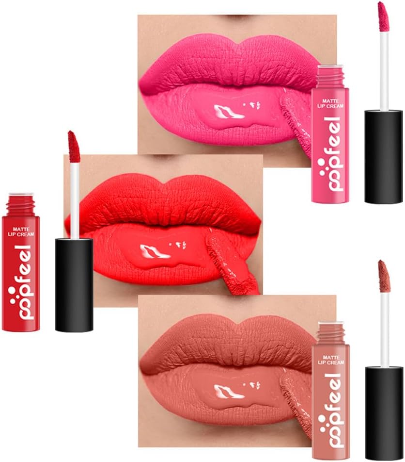 L&Wen 3 Pcs 2 in 1 Lipstick and Lip Gloss Set, Matte Velvet Double Headed High Pigmented Lipstick Gift Set, Waterproof Long Lasting Lip Makeup Gift Set for Women Scarlet Red/Pink/Bean Paste Pink