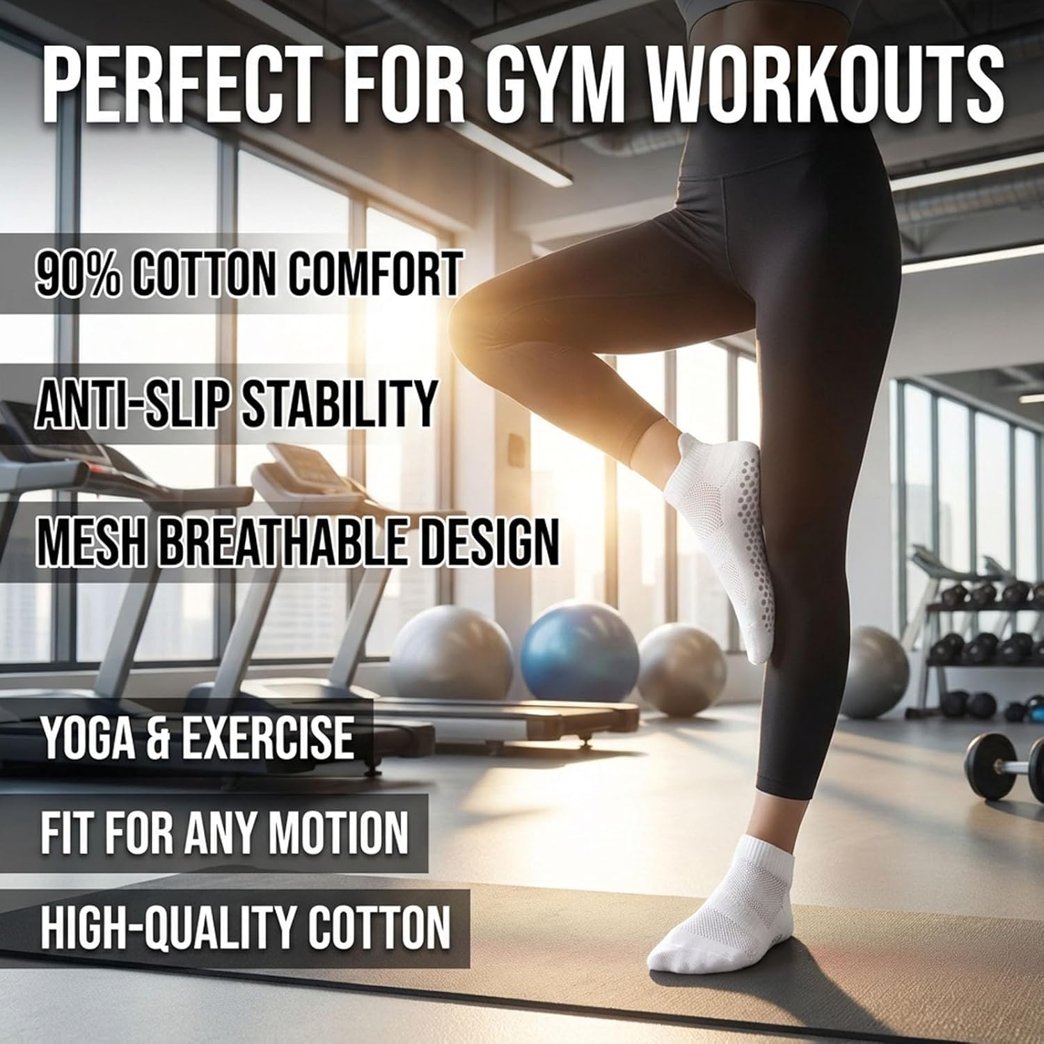 Women’s Non-Slip Yoga Socks with Silicone Grip – Breathable Athletic Socks for Pilates, Yoga, Ballet, Barefoot & Indoor Fitness