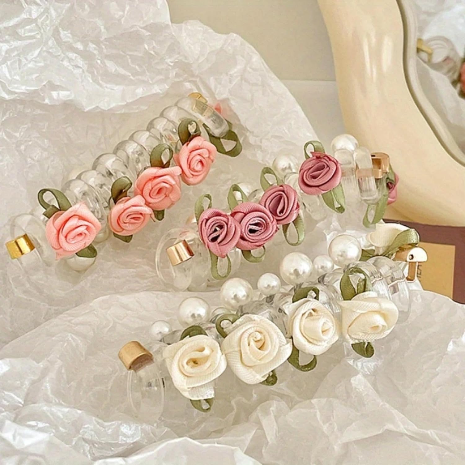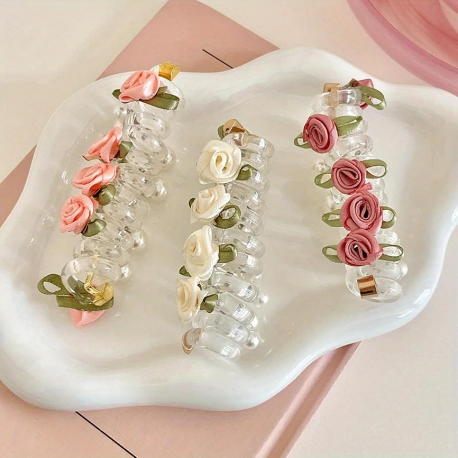 Women’s Rose Hair Rings Set (3pcs) – Spiral Hair Ring & Phone Hair Ring, Cute Coquette Y2K Hair Accessories, Soft Elastic Colorful Hair Ties for Daily Use or Gift Giving