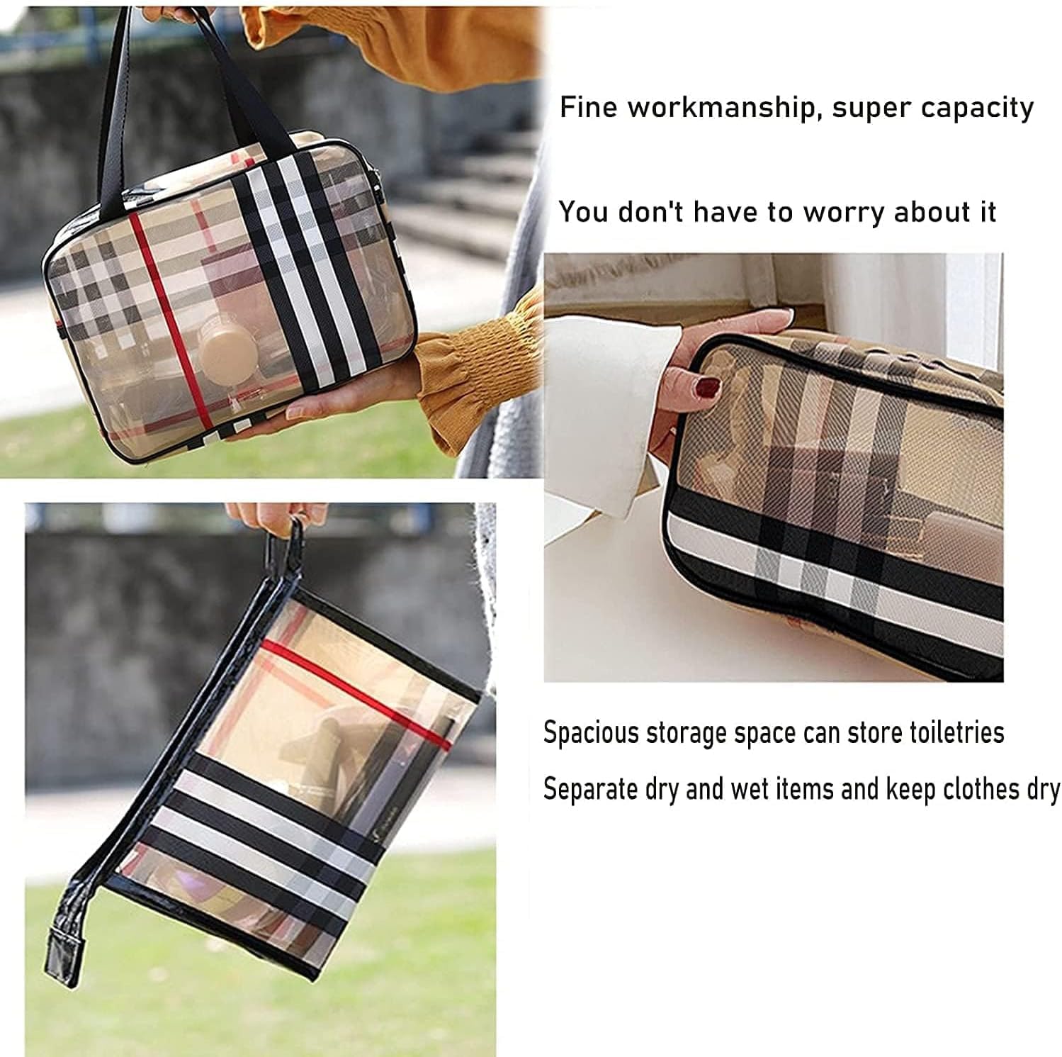 🔍【Transparent Design】The clear PVC material allows you to easily see and access your cosmetics without opening each bag, saving time and keeping your items well-organized.