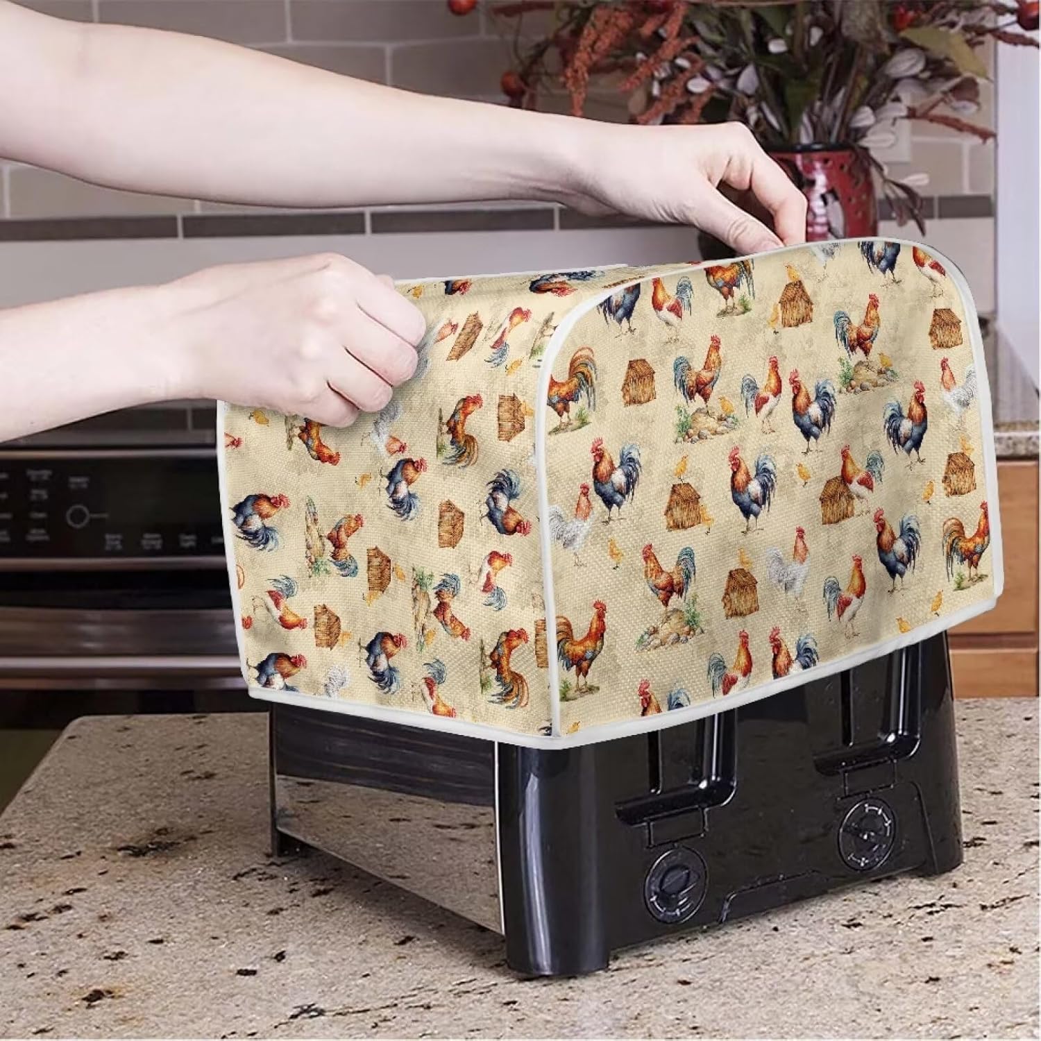 Xoenoiee Chicken Pattern Toasters Cover 2 Slice Quilted Toasters Cover Bread Maker Cover Kitchen Small Appliance Cover Toaster Oven Cover, Size S