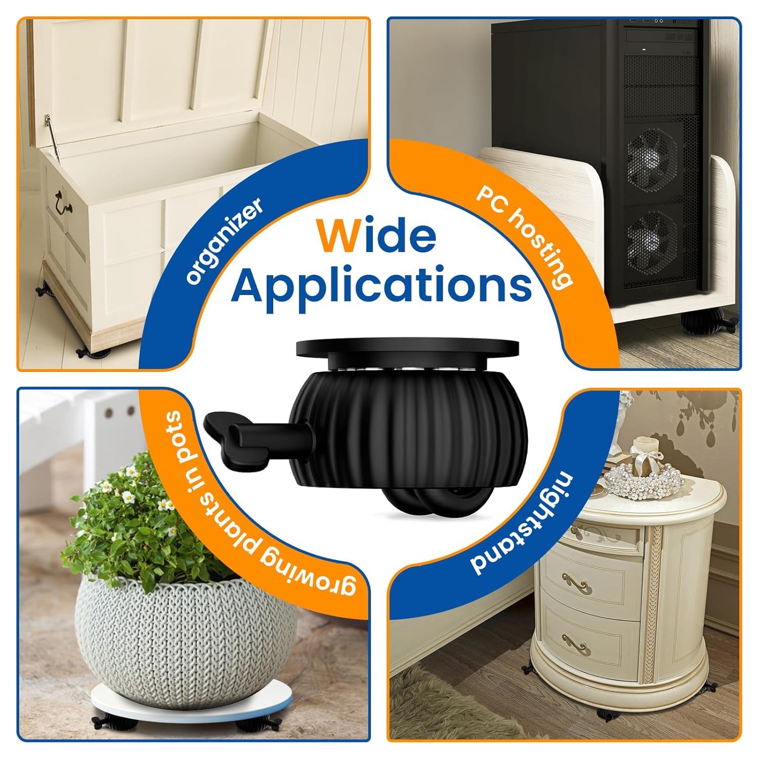 😃【Versatile and Convenient】Whether for nightstands, storage cabinets, potted plants, or small appliances like heaters and fans, these stick on wheels make moving or securing items simple and efficient.