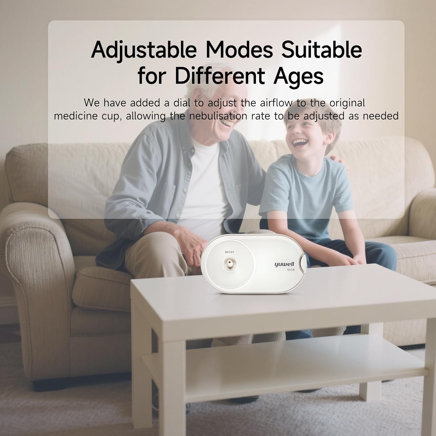 yuwell Inhaler Device for Children and Adults, Air Compressor, for Colds and Respiratory Diseases of the Upper and Lower Respiratory Tract, Easy Cleaning, Compact Design (405B)