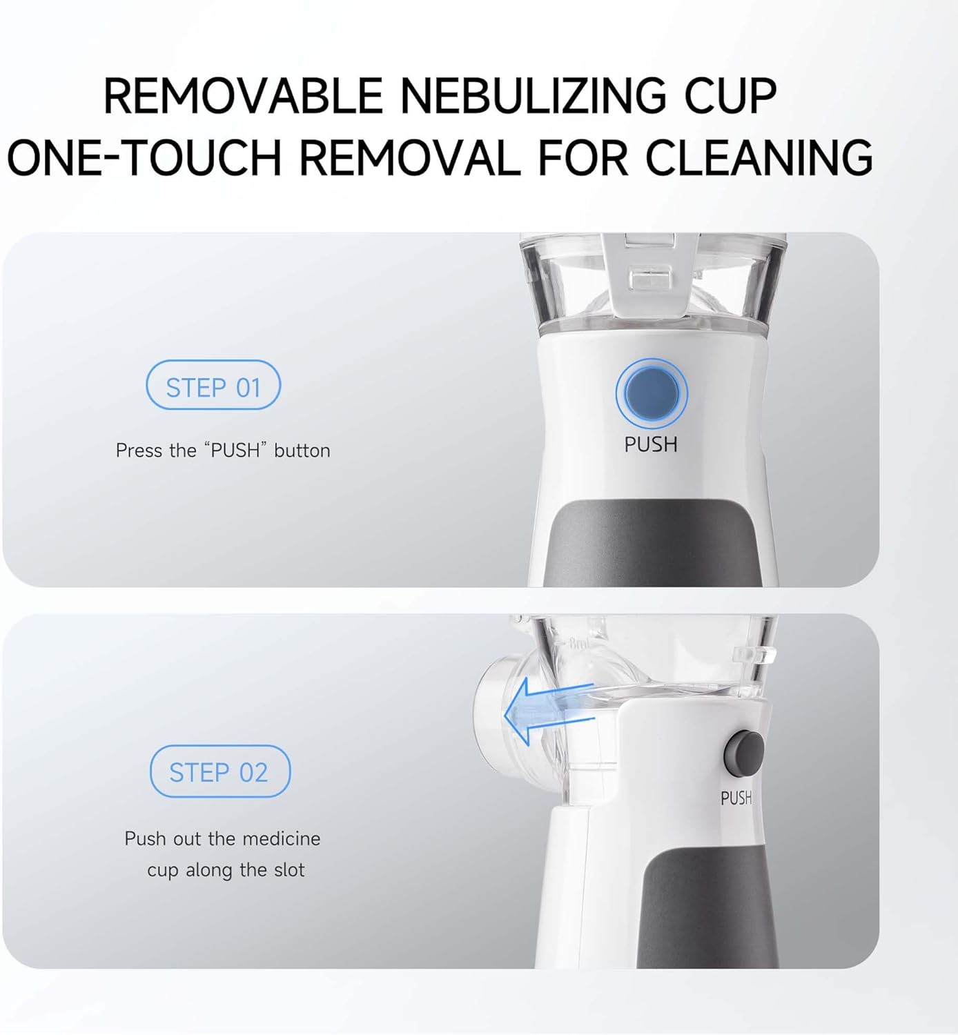 Convenient cleaning and storage: Automatic cleaning mode, one-button residue cleaning, resistant to clogging. The nebulization cup is detachable for easy cleaning. Comes with a dedicated storage bag for easy organization