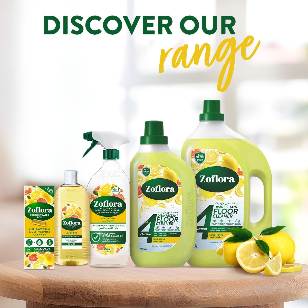 Zoflora Floor Cleaner, Lemon Zing 900ml, Multipurpose Antibacterial Disinfectant for Surfaces, Surface and Floor Cleaner, 4-in-1 Cleaning Action for Shiny and Clean Floors, Long Lasting Fragrance