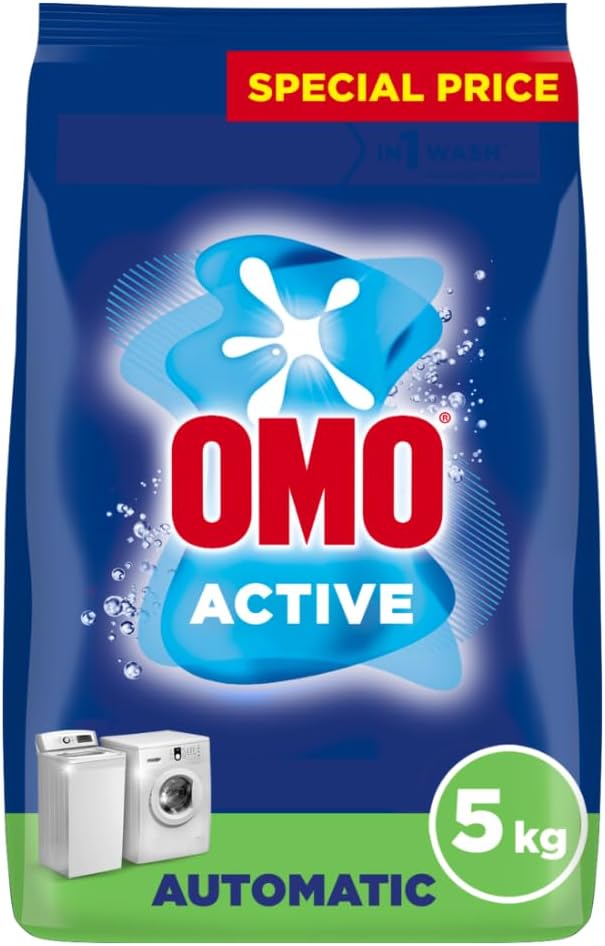OMO Automatic Powder Laundry Detergent, Active, up to 100% stain removal in 1 wash*, 5 Kg , Packaging may vary