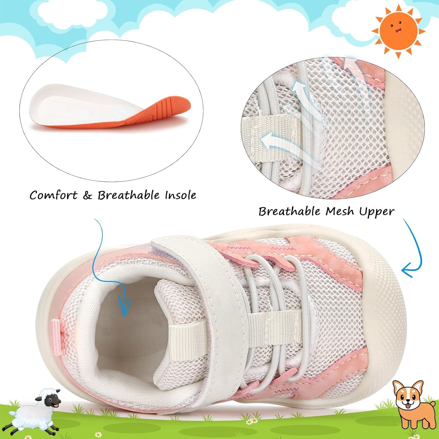 ZONEY Toddler Boys Girls Tennis Shoes Non Slip Lightweight Breathable First Walking Shoes Running Outdoor Shoes