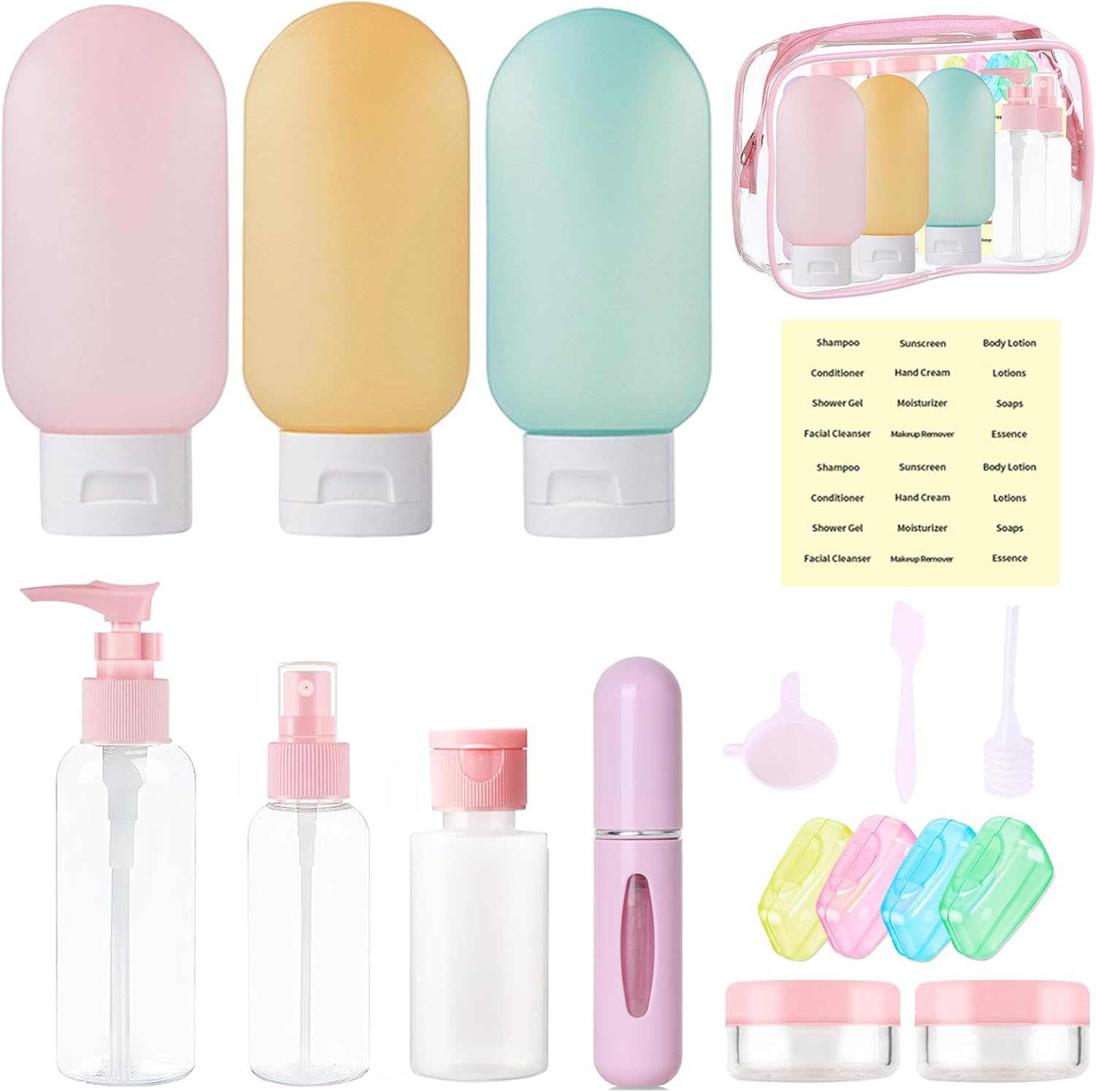 18 Pack Travel Bottles Set,Travel Size Containers,2 Oz Travel Containers for Toiletries,Toiletry Bottles for Conditioners,Shampoos,Lotions Body Washes and Perfume with Toiletry Bag